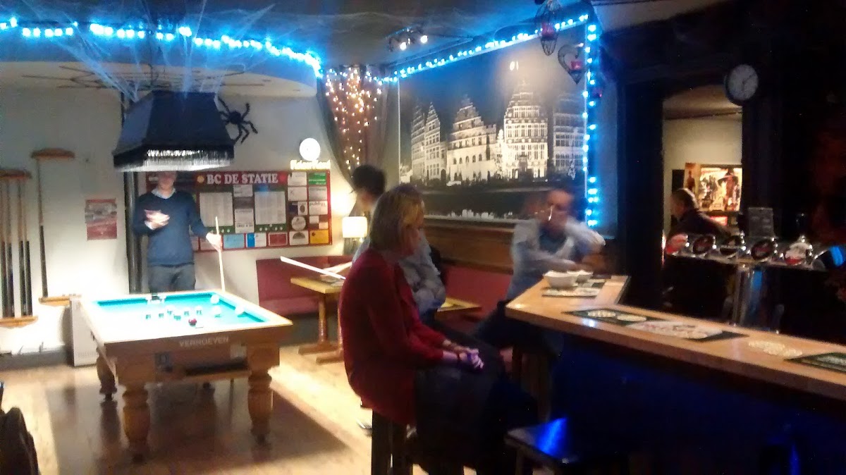 The café is well-known for its engaging atmosphere, perfect for sports enthusiasts, as it regularly features live broadcasts of football matches. But that's not all—In De Statie also provides a space for leisure activities with its dedicated golf billiards and darts clubs. Customers can enjoy a friendly game while sipping on their favorite beverages, making it a hub for social interaction and fun.